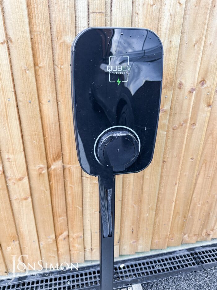 Two allocated parking spaces at the rear, electric charging point and bin storage area.