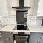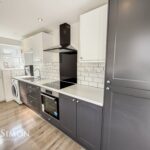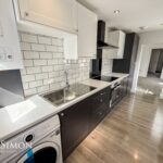 A brand-new modern fitted kitchen with a range of wall and base units with complementary worksurface, four ring electric hob with extractor unit above, electric oven, integrated fridge and freezer, plumbed for washing machine, parts tiled walls, combi boiler, single bowl sink unit with drainer, laminate flooring, ceiling spotlights, UPVC double glazed side and rear windows, UPVC double glaze side and rear door.