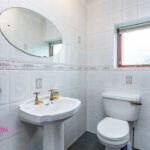 A two-piece white suite comprising of a low-level WC, wash hand basin, fully tiled walls and flooring, radiator, ceiling coving, ceiling point and double glazed rear window.