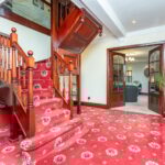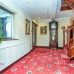 The ground floor begins with an entrance porch opening into a grand hallway, leading to a spacious lounge complete with a feature multi-fuel stove and stone fireplace. Further accommodation includes a formal dining room, a stunning open-plan dining kitchen with patio doors to the garden, a practical utility room, and a convenient downstairs cloakroom. On the first floor, a generous landing gives access to four large double bedrooms. The principal bedroom benefits from a stylish en-suite shower room and walk-in wardrobe, while the remaining rooms are served by a three-piece family bathroom and a separate W.C. The second floor is dedicated to a versatile fifth bedroom, currently used as a large entertaining space with a built-in bar and an adjoining office, offering flexibility for a variety of lifestyles. Front Exterior: Remote-controlled electric gates open onto a spacious cobbled driveway with access to a double garage, providing ample parking for multiple cars or even a motorhome. Rear Exterior: To the back, there is a flagged and cobbled patio leading to a beautifully private garden, set against a backdrop of open countryside with far-reaching views across Roundhill and beyond.