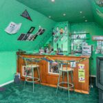Three Velux rear windows, radiators, storage into eaves, ceiling spotlights, built-in bar, power points and TV points.