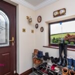 A composite double glazed front door, UPVC double glazed front window, radiator, tile flooring, ceiling coving and wall light.