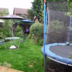 Front: flagged pathway, mature lawned garden area with complementary shrubs and borders, security light.