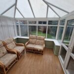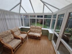 Rear: flagged patio area, mature lawned section with complementary shrubs and borders, fully enclosed with the added benefit of not being directly over looked.