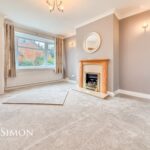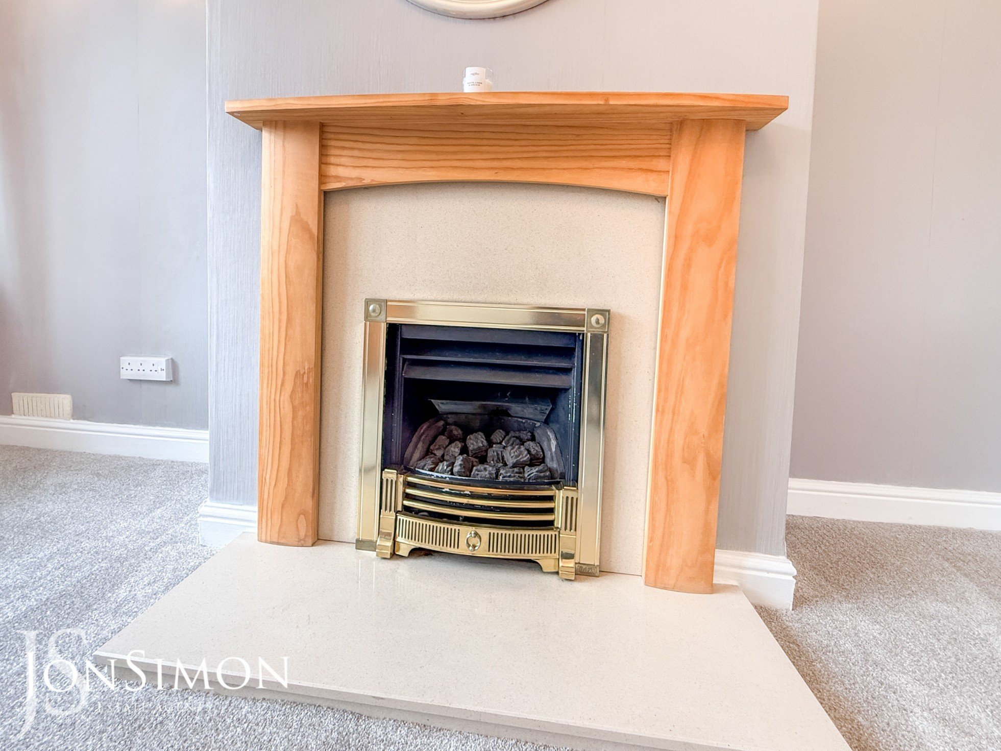 UPVC double glazed Bay fronted window, coal effect gas fire with feature surround, radiator, ceiling coving, wall lights and ceiling point.