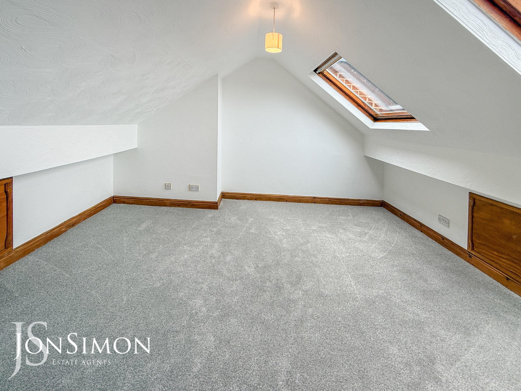 Two Velux double glazed windows, storage into the eaves and ceiling points.