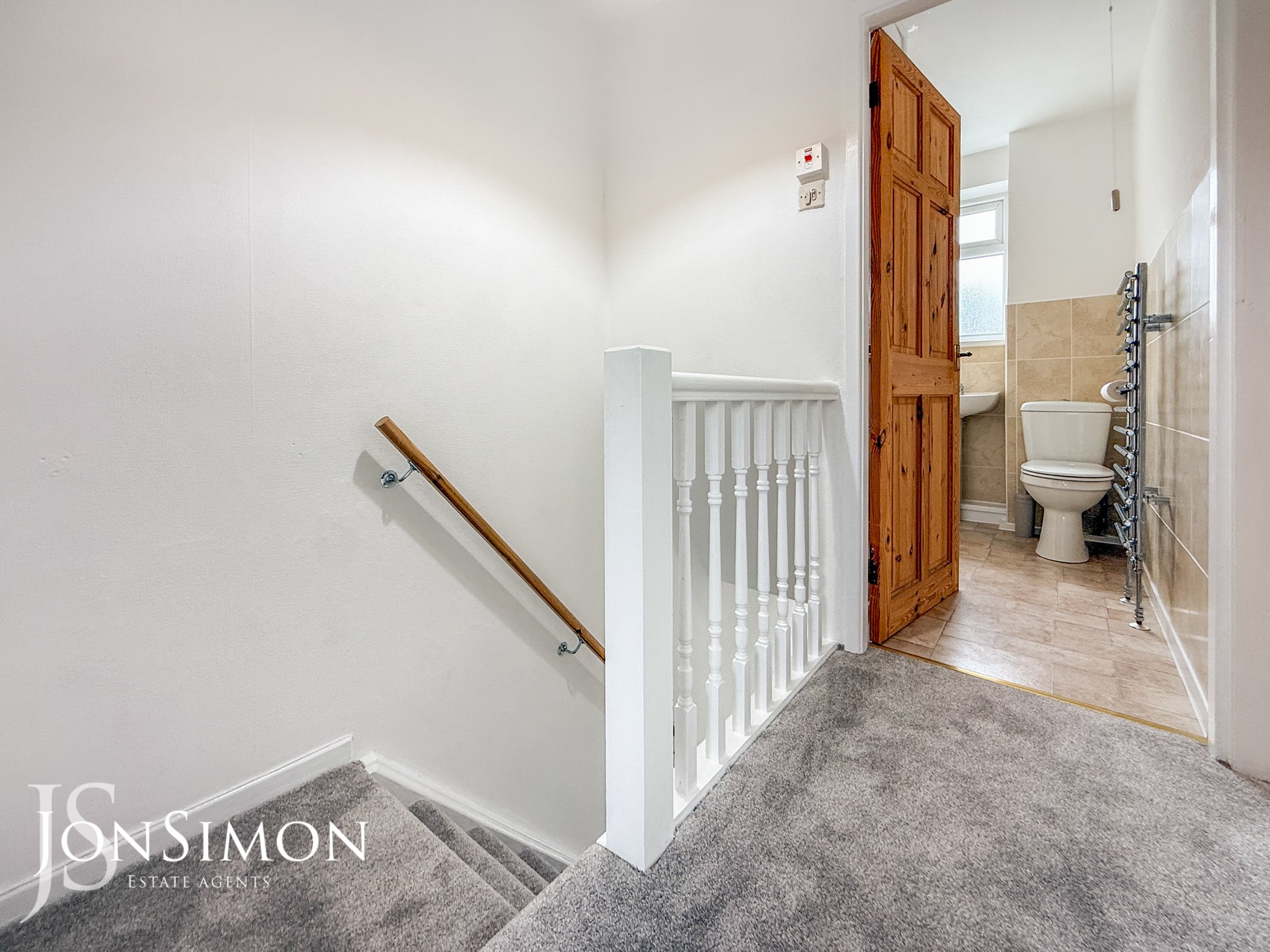 UPVC double glazed rear window, radiator, ceiling point and stairs leading to the second floor.