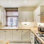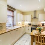 4.33m(14'2'') x 3.11m(10'2'') - Including under stairs storage. Modern kitchen with a range of cream shaker style units incorporating inbuilt oven, gas hob, stainless steel hood, inset ceramic sink unit, integrated fridge, freezer, dishwasher, washing machine, tiled splash backs, tiled floor. UPVC double glazed rear window and back door.