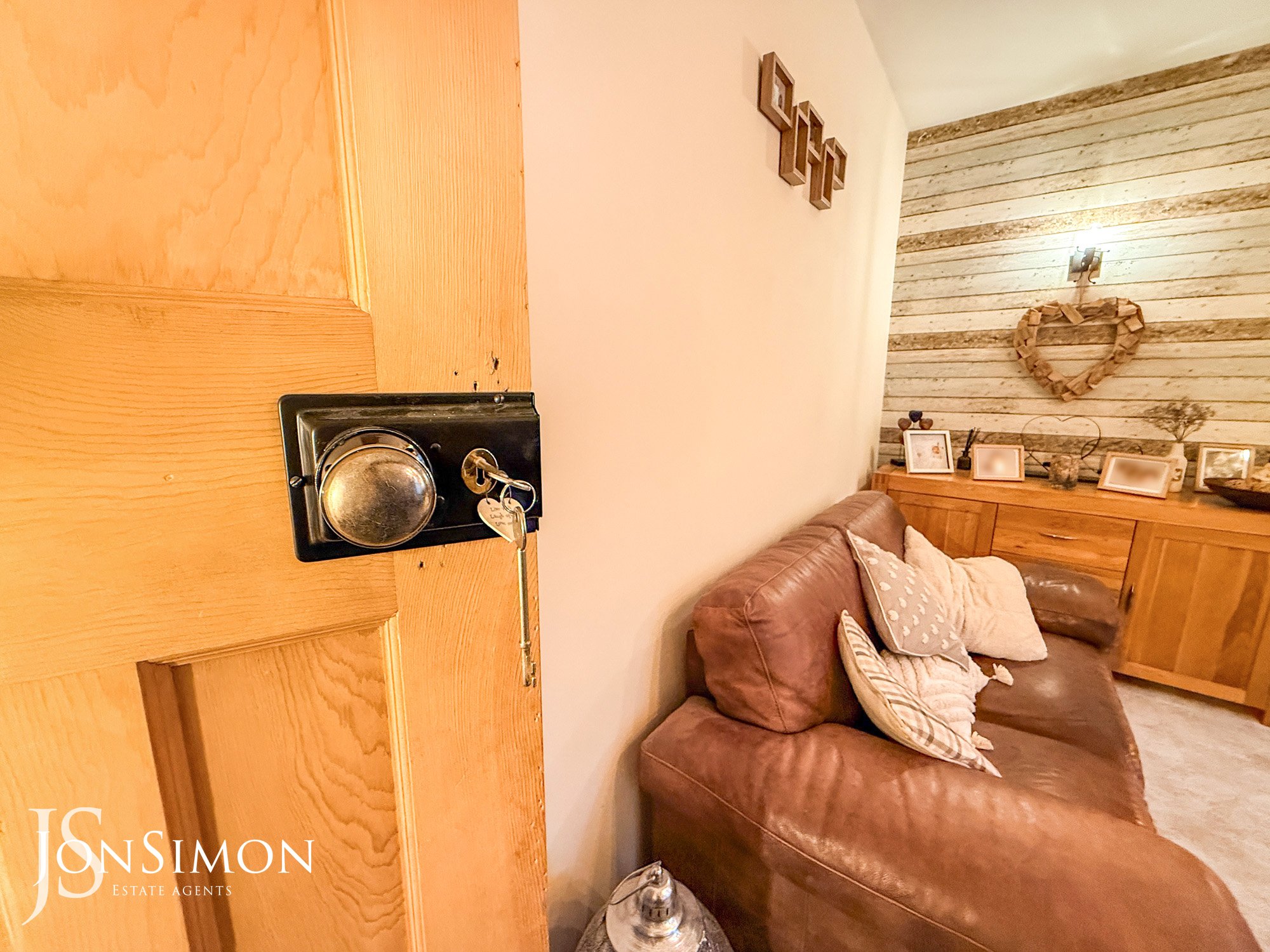 4.85m(15'11'') x 4.35m(14'3'') - Feature exposed stone fireplace with wood burning cast iron stove, beams to ceiling, wall lights. UPVC double glazed front window.