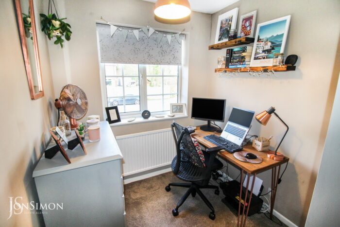 UPVC double glazed front window, radiator, storage cupboard and ceiling point.