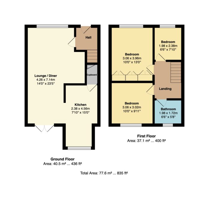 UPVC double glazed front door, meter cupboard, radiator, ceiling point and stairs leading to the first floor landing.