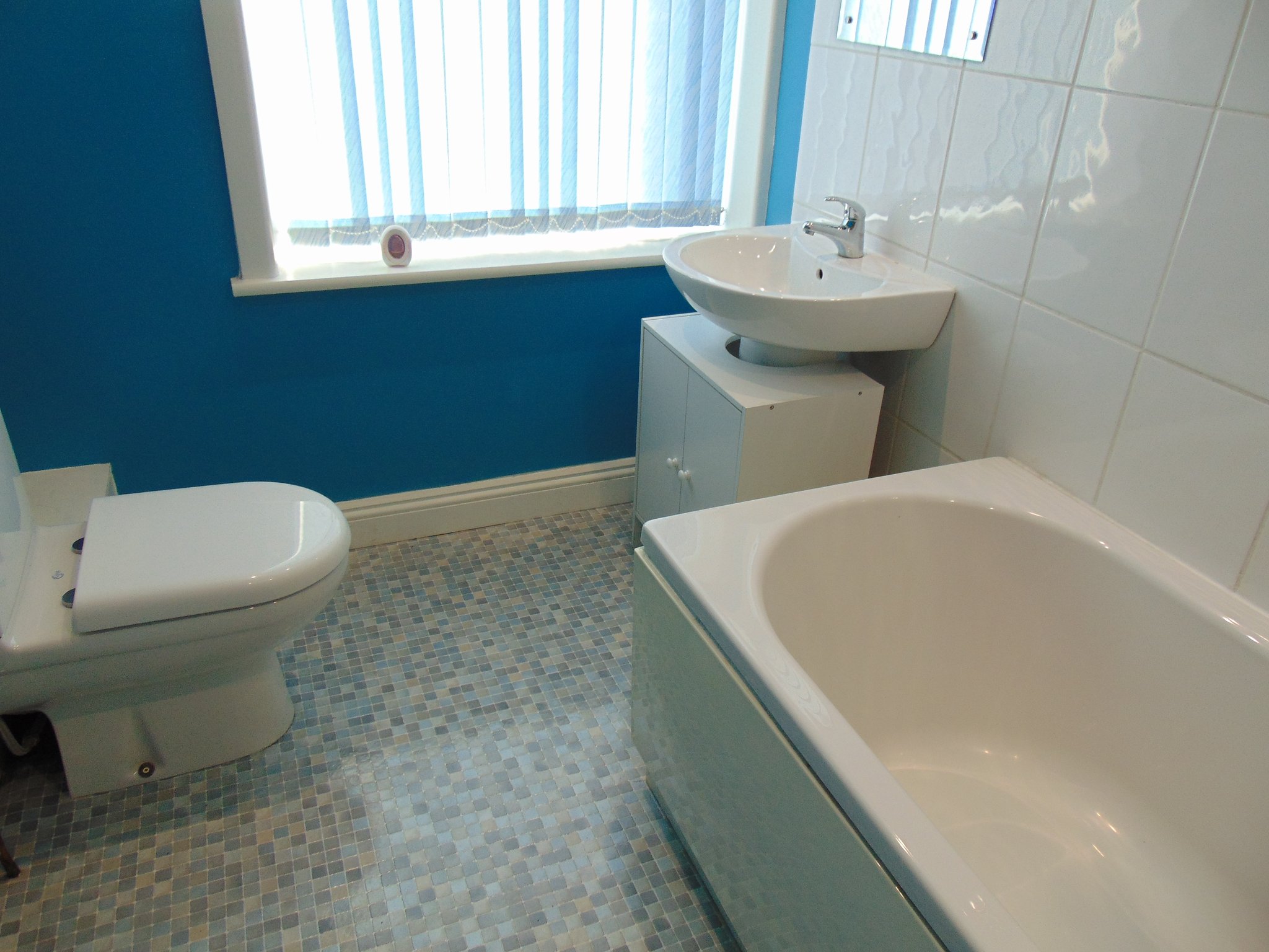 To the first floor, 1 double bedroom, 1 single bedroom and 3 piece bathroom suite with shower over bath.