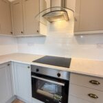 Fully fitted dining kitchen with an ample range of Dove Grey Shaker style wall and base cabinets with contrasting work surfaces and ceramic splash back tiling, composite sink and drainer with mixer tap, Zanussi fan assisted oven with matching hob and overhead extractor canopy, integrated washing machine and ample power points. Newly installed combination central heating boiler. Neutral décor, two ceiling light points central heating radiator and oak effect luxury vinyl tile flooring.