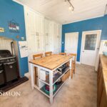 UPVC double glazed French patio doors, combi boiler, base unit with worksurface and ceiling point.