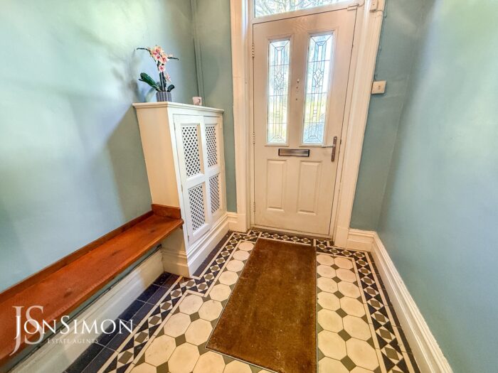 A composite double glazed front door and window, original tiled flooring, meter cupboard, ceiling cover and ceiling point.