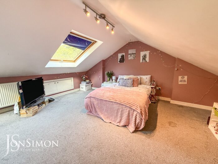 Two Velux front windows, radiator, storage into the eaves, large storage cupboard and ceiling point.