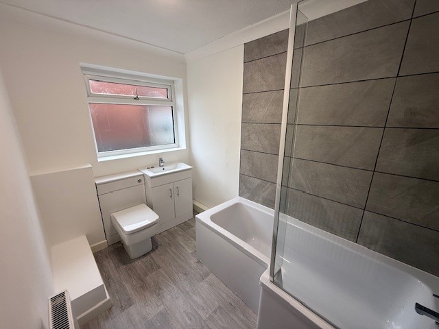 To the first floor, two bedrooms to which one offers a fitted wardrobe. Separating the two bedrooms, there is a modern 3 piece, family bathroom suite, with vanity basin and contemporary tiling to compliment.