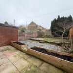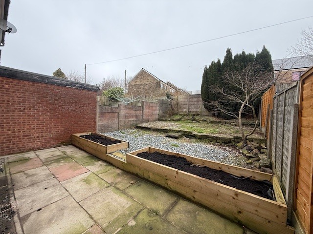 External to the rear of the property, there is a tiered garden with a paved seating area.