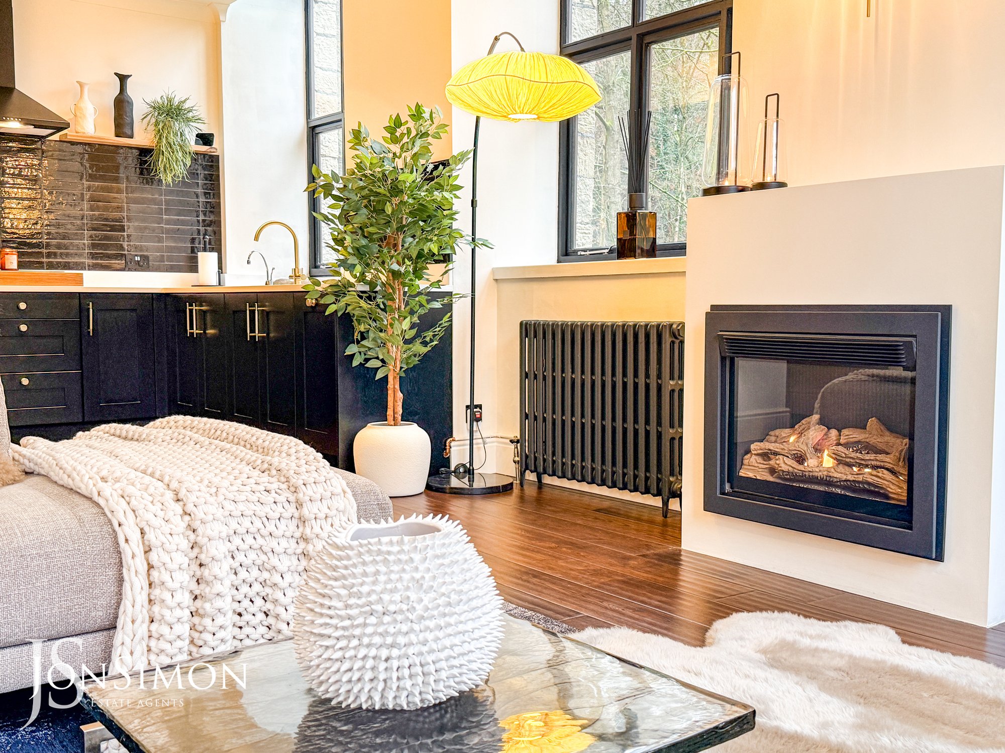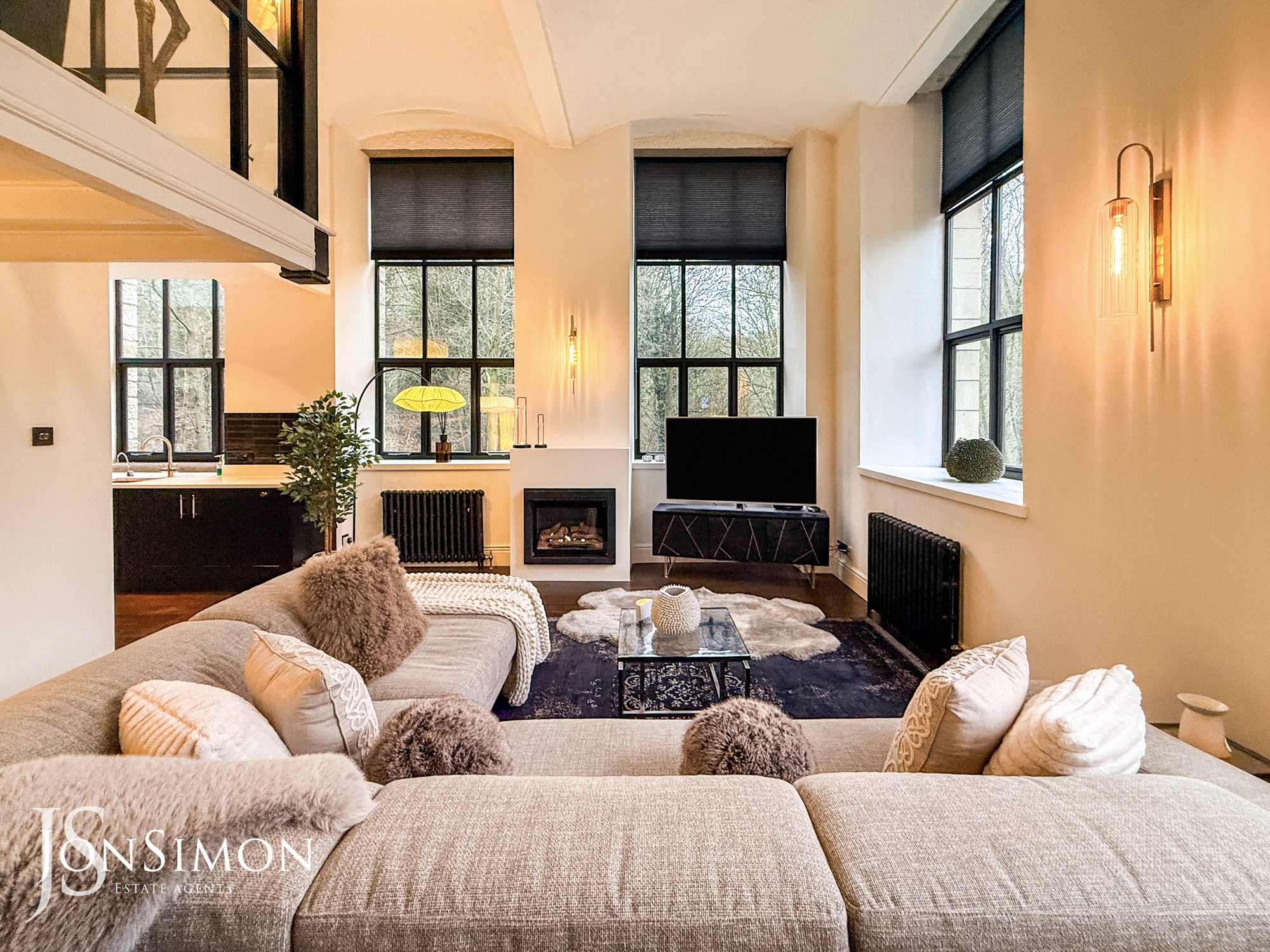 ** MUST SEE! ** SUPERB THREE BEDROOM APARTMENT WITH VIEWS OVER THE RIVER & WOODLANDS ** STUNNING INTERIOR ** GARAGE & SECURE ALLOCATED PARKING ** SOUGHT AFTER LOCATION ** Situated in the heart of Summerseat Village, this stunning three-bedroom first-floor apartment enjoys a desirable double aspect and forms part of The Spinnings, a Grade II listed Victorian mill conversion. Finished to an exceptional standard throughout, the apartment combines luxury living with an abundance of natural light and space. This truly impressive home offers outstanding character, featuring exposed stone walls and striking curved ceilings. Conveniently located within walking distance of local schools, amenities, and a selection of pubs and restaurants, the property seamlessly blends modern living with original architectural features. The accommodation briefly comprises a communal entrance hallway, private entrance hall, a spacious and bright lounge with feature gas fire, an open-plan contemporary kitchen, mezzanine sitting room, children’s den/playroom, utility room, and a unique principal bedroom with a stylish three-piece en-suite shower room and mezzanine dressing room. There are two further double bedrooms, a stunning three-piece white shower room, office/walk-in wardrobe, and a large storage area. Externally, the property benefits from private allocated parking within the indoor parking area, a single brick-built garage, visitor parking, and access to well-maintained communal gardens. Viewing is highly recommended and strictly by appointment only via our Ramsbottom office.