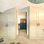 Built-in wardrobes and units with complementary desk and wall lights. Fitted wardrobes.