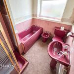 A five piece bathroom suite comprising of a panel bath with mixer tap, bidet, low level WC, wash hand basin, walk-in shower unit with electric shower, radiator, parts tiled walls, ceiling point and UPVC double glazed rear window.