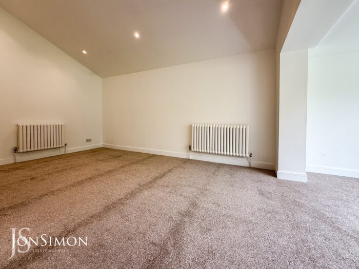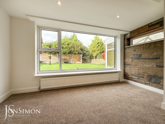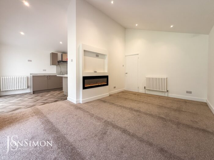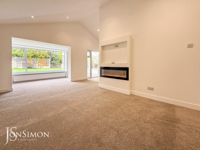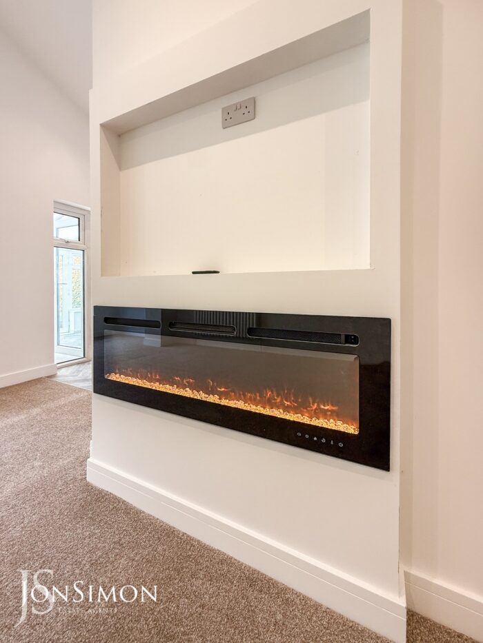 UPVC double glazed rear window, radiators, remote controlled wall mounted electric fire and ceiling spotlights.