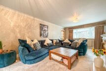 Upon entering, a welcoming hallway with a bespoke staircase leads to the first floor and provides access to a cloakroom/WC, a formal dining room, and a generously proportioned living room complete with an elegant feature fireplace. The dining room opens through double doors into a contemporary fitted dining kitchen, appointed with modern units and high-quality finishes, which in turn grants access to a practical utility room. The utility room connects conveniently back to the living room, which enjoys sliding doors opening directly onto the rear garden, creating a seamless transition between indoor and outdoor living spaces. To the first floor, a galleried landing leads to three well-appointed double bedrooms, a storage room, and a stylish family bathroom. The principal bedroom further benefits from a stunning, newly installed three-piece en-suite shower room.