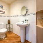 UPVC double glazed frosted rear window, central heating radiator, low basin WC, vanity top wash basin, double panelled bath, electric feed shower unit, tiled elevations and Karndean flooring.