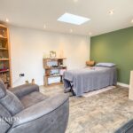 Externally, the property offers an exceptional outdoor entertaining space designed for both leisure and functionality. The bespoke outbuilding provides a substantial multi-purpose area, complete with a bar and studio featuring underfloor heating, ideal for home working, fitness, or recreation. The rear garden further includes a dedicated barbecue and seating area, perfect for al fresco dining and social gatherings. To the front, the property is enhanced by elevated gravelled bedding areas and a generous driveway providing off-road parking for several vehicles.