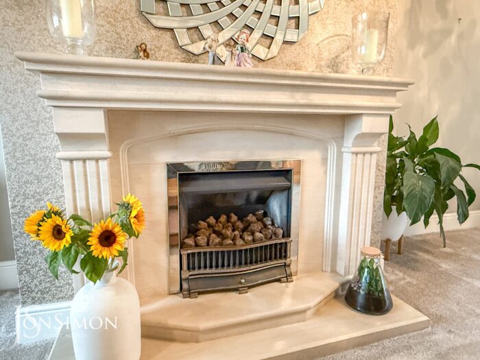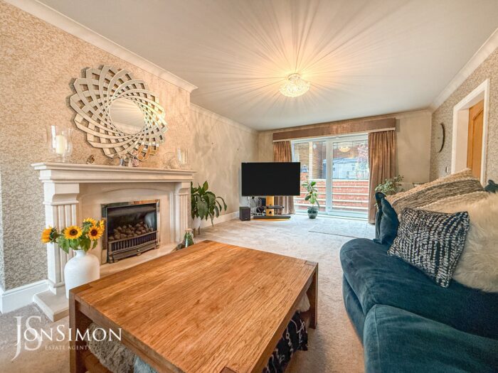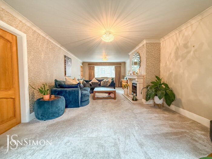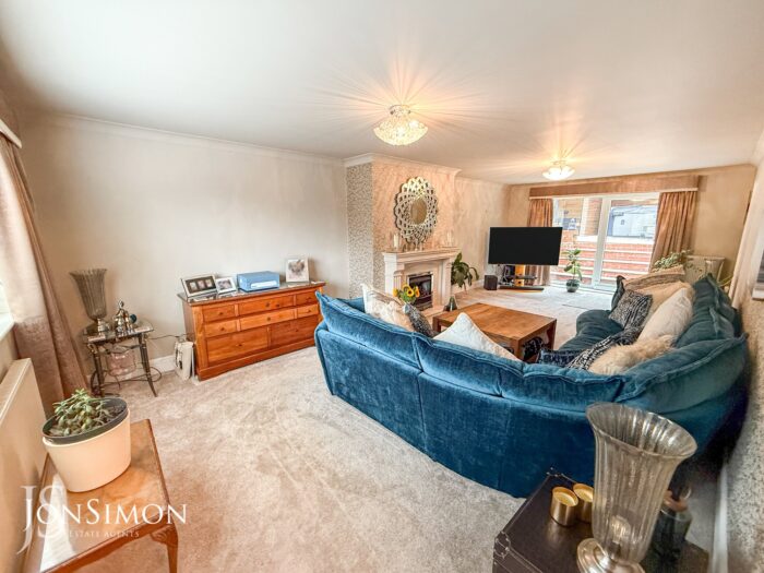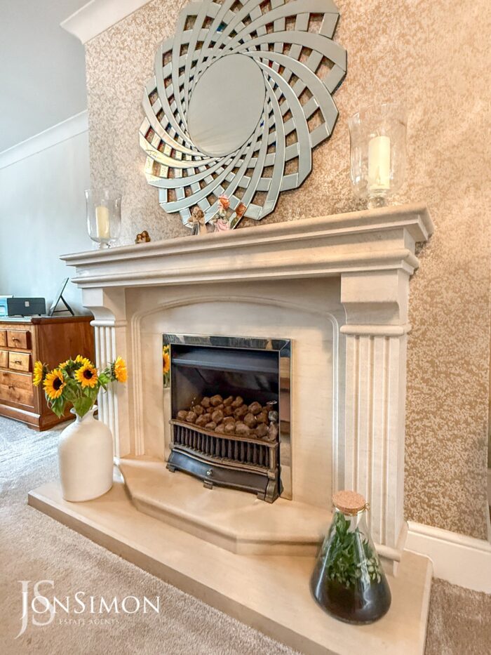 UPVC double glazed window, two central heating radiators, television point, polished limestone fireplace with recessed living flame gas fire, coving, UPVC double glazed sliding door to the rear and door to the utility.