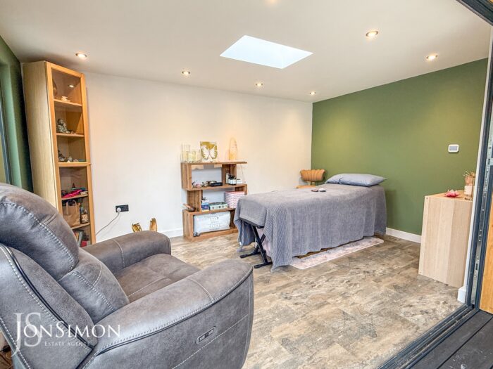 Double glazed bi-folding doors, power points, ceiling spot lights and ceiling window.