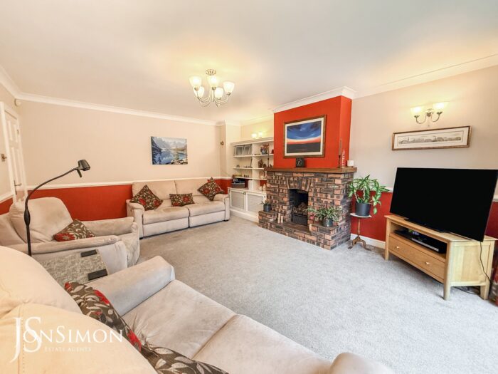 UPVC double glazed sliding patio door, feature brick built open fireplace, radiators, wall lights, built-in shelves and cupboards, ceiling coving, ceiling point and TV point.