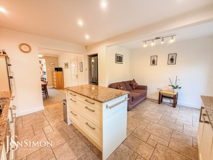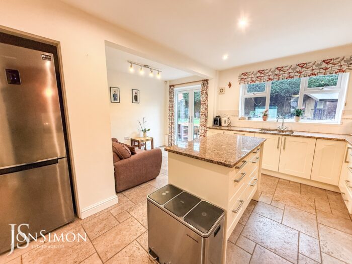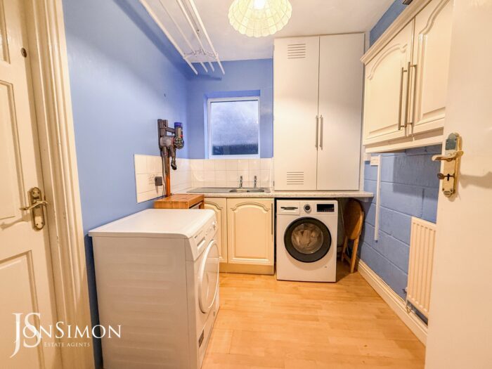 Wall and base units with complimentary works surface, single bowl sink unit with drainer, plumbed for washing machine and dryer, radiator, laminate flooring and ceiling point with access into the garage.
