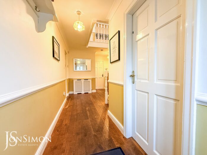 A double glazed front door, solid wood flooring, radiator, ceiling coving, under the stairs cupboard, large storage cupboard, ceiling points and stairs leading to the first floor landing.