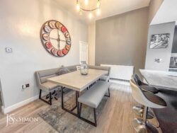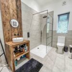 Stunning and spacious, fitted shower room comprising, wc, wash hand basin set in decorative oak stand, oversized shower cubicle, heated towel rail, UPVC double glazed window to the rear.