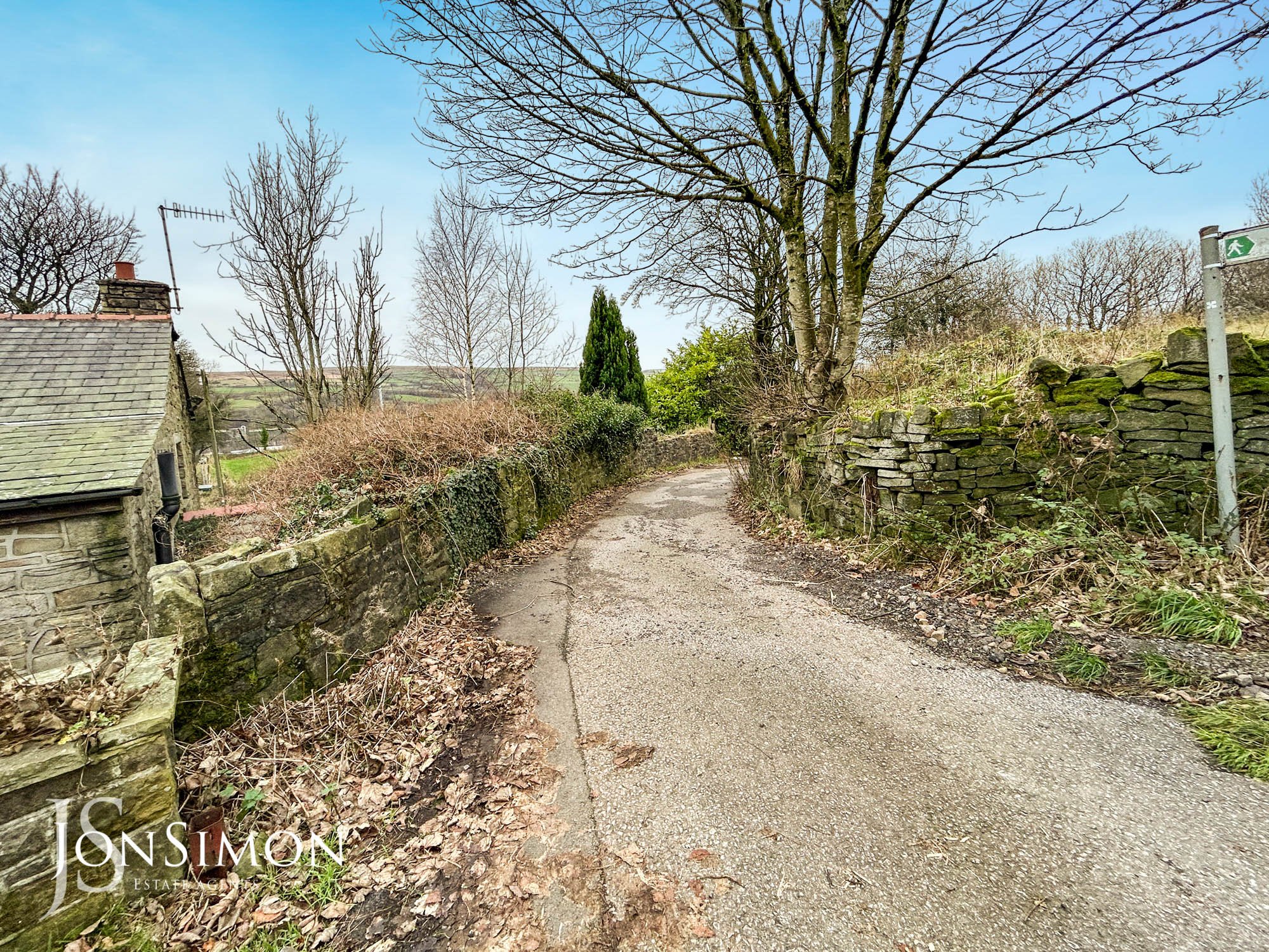 Rear: Flagged patio area and steps leading down to the back door. A driveway area to provide off-road parking to the rear.