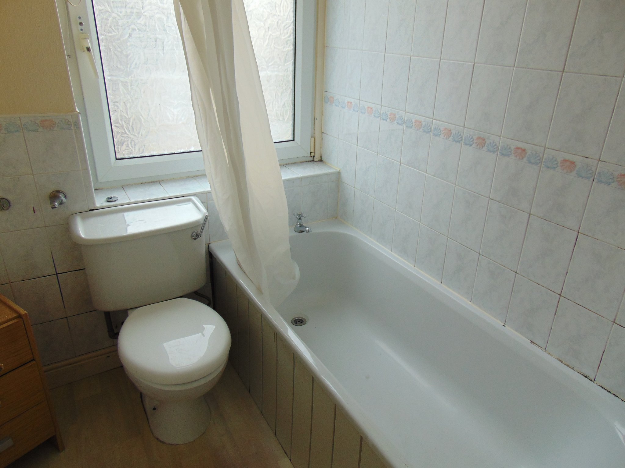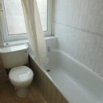 a fully fitted three piece bathroom suite comprising of a low level W/C, pedestal wash basin and a panelled bath with shower over.